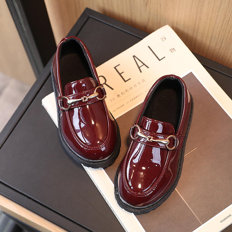 China imported kids formal shoes crafted from premium glossy synthetic leather with a soft cushioned insole for all-day comfort. Elegant slip-on design with durable rubber sole ensures easy wear and long-lasting use. Perfect for parties, school functions, and formal occasions. Suitable for both boys and girls.